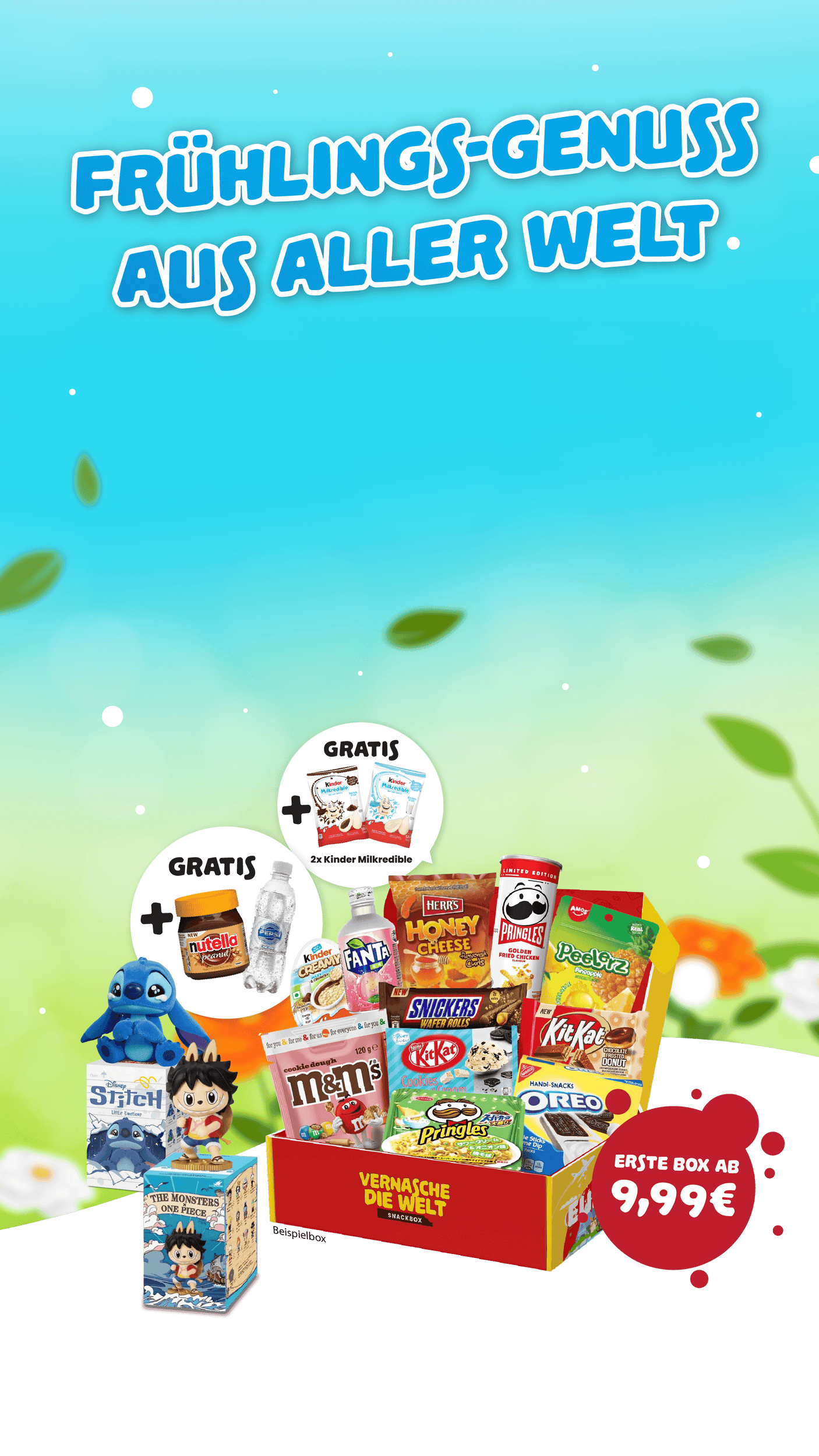 Jeden Monat neue internationale Snacks entdecken. – authentisch, lecker und immer überraschend. Plus ein exklusives Extra zu deiner ersten Box.