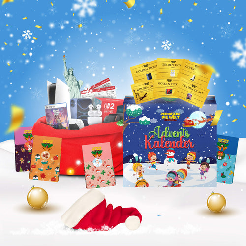 Wir verstecken insgesamt 15 Goldene Tickets in unseren Adventskalendern. In einem der Türchen könnte also dein Ticket auf dich warten! 🎁 Mit etwas Glück sicherst du dir damit einen unserer Mega-Preise – zum Beispiel eine Reise nach New York oder brandneue Apple AirPods.