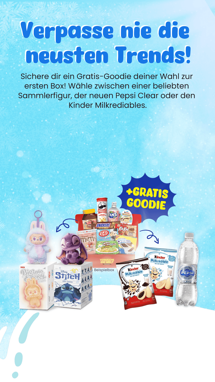 Reise jeden Monat mit uns in ein anderes Land und lasse dich von den außergewöhnlichsten und spannendsten Snacks beliefern, die es hier sicherlich nicht zu kaufen gibt. Sei es Südafrika, Japan oder Irland. Ob Mexiko, Finnland oder Spanien. Mit den Länderboxen begibst du dich auf eine kulinarische Weltreise die du so schnell nicht vergessen wirst. Dabei kannst du frei zwischen Laufzeiten von drei, sechs oder zwölf Monaten wählen, die du jederzeit bequem kündigen kannst.
